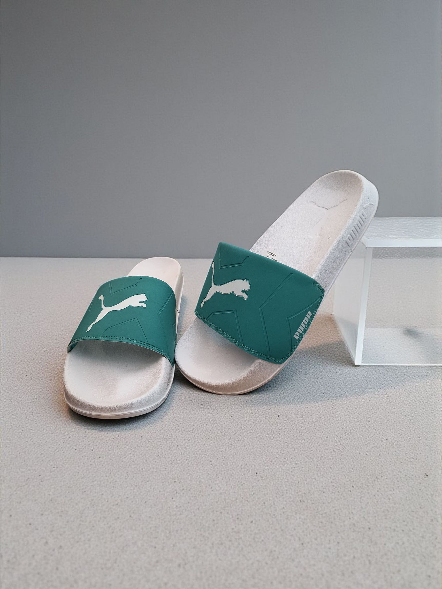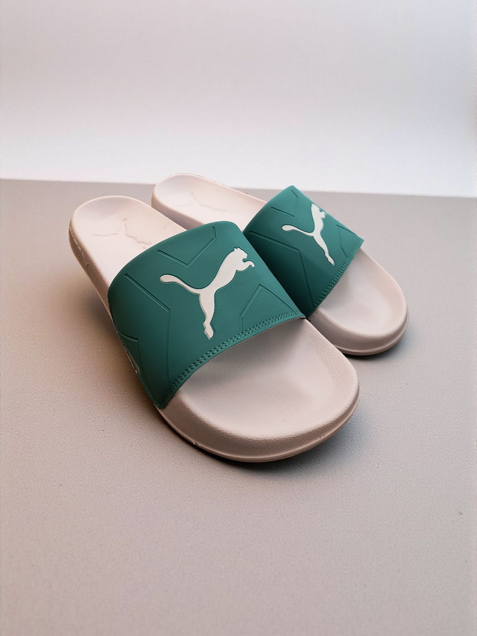 Puma Logo Printed Sliders for Men Green White