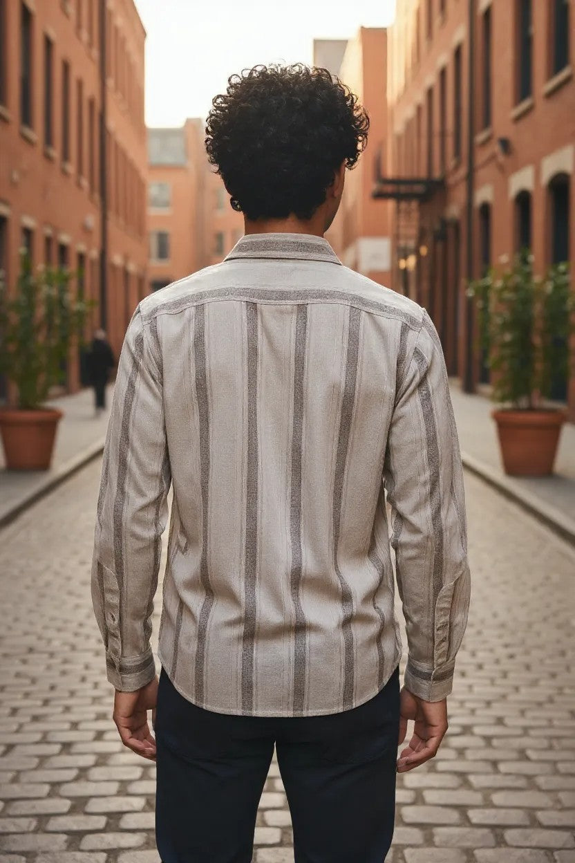 Vintage Auto Vertical Stripe Shirt Brown